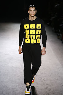 I'm loving Jeremy Scott's new stuff! His collection from Paris encapsulates everything that fashion is at the moment; prints, bold colours, structured shapes, fun... just something refreshing that isn't taking things to seriously. Telephone print trousers, dice print skirts and tops, holey 2-pieces and leather jackets...that phone-pad print top is defo on my wish list!