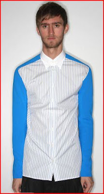 ...this Raf Simons shirt. I know I usually never put model shots on here, but unfortunately http://www.oki-ni.com/ didn't have the shirt on its own and I felt I needed to share it with you. I picked this one up in Selfridges the other day and didn't want to put it back down but alas, the price tag forced me to. The arms are made from wet-suit material. Pure genius in a shirt and no need to layer up - wear on its own in all its glory. Buy it now from oki-ni for £285.