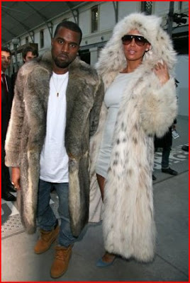 Kanye Kanye Kanye, word of advice... if you don't want to be slammed for your fashion choices, don't provoke! Here he is, with girlfriend Amber Rose, at Paris Fashion Week both in head to toe fur jackets. Quite controversial really; fur in general, and at a fashion show. Glutton for punishment me thinks. We've all seen what happens at fashion shows when fur is involved - protesters turn up with buckets of red paint. This time it was Dan Matthews - vice president of PETA (People for the Ethical Treatment of Animals) - with his red-hot tongue. On the PETA official website Matthews voiced his opinion of the singer: "Kanye can't help making himself look like an idiot, whether at an awards show or a fashion show. He and his girlfriend look like pathetic creatures from a shabby roadside zoo."