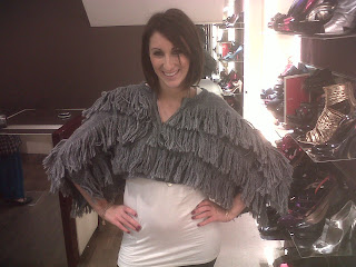Look at Emma's cardi from Topshop (£50), it's literally the most amaze thing I've seen come out of Sir Philip's sweat-shop for a while. It reminds me slightly of the big hug arm things in the Horlicks ad, only more couture and fabulous! Love love love it. (And, by the way, she was in the Kurt Geiger shop and the sale is incred, she got stunning short grey boots with chain detail for £109 reduced from £470. Get down there!)