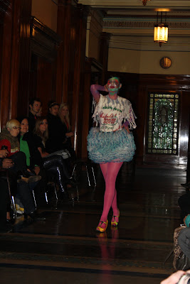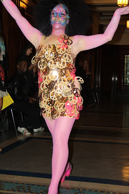 Johnny Blueeyes - these were from the presentation of his new collection of styled outfits. He's all about love, peace and freedom of expression. It was actually a breath of fresh air to watch him and his models at work. He professed, as he marched slowly up and down the catwalk in 6 inch platform thigh high boots and holding a banner with the message 'I HAVE HOPE' emblazoned on it, that it doens't matter what you look like, sound like, who you're friendly with, what your skin colour - we are all beautiful people and should be able to wear what we want.