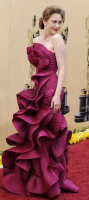 Marchesa, along with Sandra Bullock, were the big winners of the night fashion wise. 'Up In The Air' star Vera Farmiga wore this strapless, deep pink ruffle gown - the origami detail being synonymous to Marchesa's collections. Sandra Bullock posed like the Oscar she won in the intricate crystal beaded bodice and long trained dress and Gabourey Sidibe of Precious stood proud in her royal blue full length frock. Well done girls, and well done Marchesa.