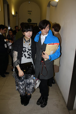 Her friend is wearing a Raf Simons jacket from his autumn winter collection last year, the blue sleeves are a wet suit-type material. I'm a little envious. It was high on my wish list last year, unfortunately Santa Clause didn't deliver. Booo.