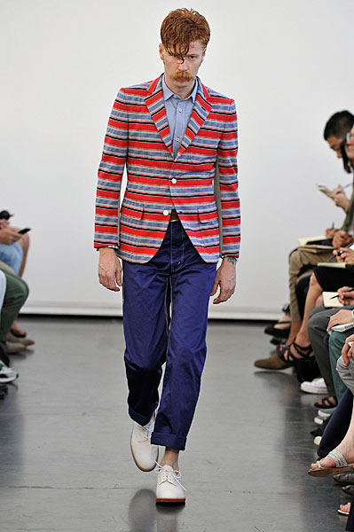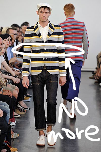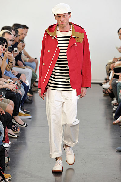 I was really impressed by the very Western collection that Junya Watanabe sent down the catwalk - he obviously loves a bit of boating! I often yawn at nautical collections, but this caught my eye. Some of the coloured stripes were really interesting and the summer duffles will be widely coveted I'm sure. My only criticism (sorry to be negative) - why all the HORIZONTAL stripes?? I can only do vertical, it's more slimming!