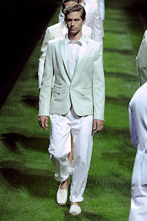 With Milan and Paris menswear fashion weeks over now, it's time to reflect I think. I've had a browse through some of the images from the shows, unfortunately I wasn't there, and it looks like a good summer next year for us gents! Having said that, it's been the most unassuming and surprising designers that have caught my eye for next season. It's rather refreshing not having to talk about, dare I say it, my favourite, Westwood or the usual Margiela or Rick Owens. I know, it scares me too!