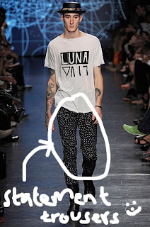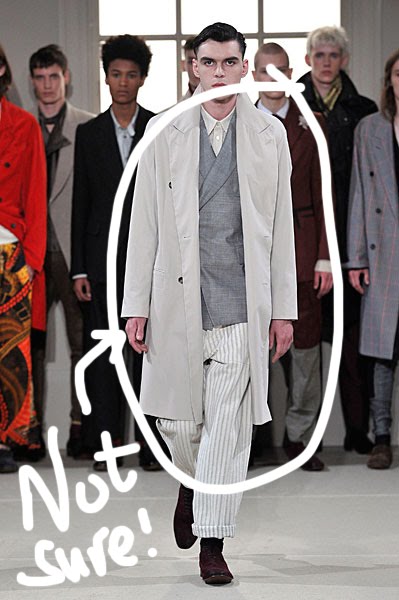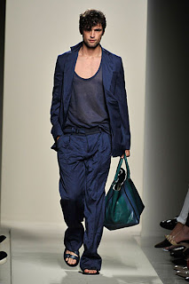 Back to the good stuff. To pick apart men's shows by trend is seemingly a bit harder than the women's shows and let's face it, a lot of men don't actually 'do' trends. They just do 'that looks alright with that'. But, to go back to trends for just a minute, I have seen lots of lovely greens and blues on the catwalks, especially mint green, which is now my favourite colour - fickle I know! Also, the best news/trend of all... HARDLY ANY SKINNY TROUSERS! Loving all the wide leg and baggier shapes. It's all about cruise-wear now. I'm SO happy.