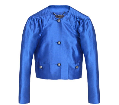 The Margaret jacket in bright blue silk, £550