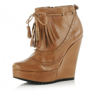 More red with this long blazer coat from Zara, £129; and these fringed ankle wedge boots (LOADS of wedges again for spring summer 2011 by the way!) from the mighty shoe giants, River Island £84.99
