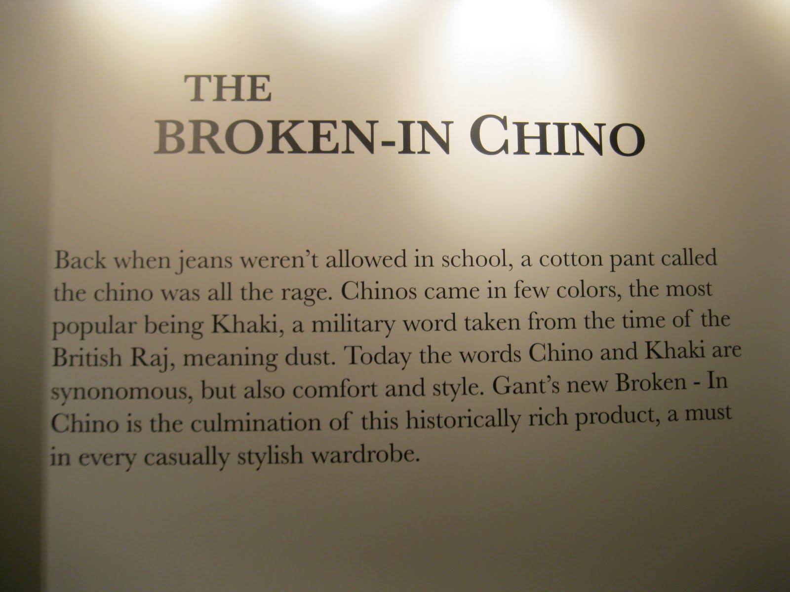 I also spotted this wall dedicated to the 'broken-in Chino' - something that Gant has become synonymous with. Take a read, it really is a sweet story...