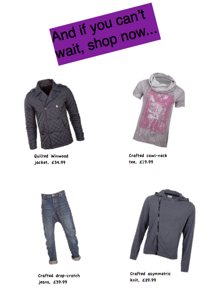 If it's inexpensive stylish wardrobe filler pieces you're after, head straight down to a Republic store, and look for, specifically, the brand Crafted. Usually reserved for a big shopping centre (I know there is a fancy one in Westfield), you'll find some great little items. Come the spring months, be prepared for some comfortable and trendy relaxed-feel pieces (below), more harem shapes and even the odd Westwood inspired side-button fly (so that's I like everything so much!). Find also some fab denim pieces and a few vintage-inspired shirts and prints (paisley, mmmm).