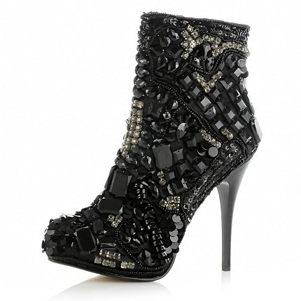 River Island know how to good footwear, these are NO exception - pure party glitz boots, £140; and loving this real contrast burgundy velvet number from Miss Selfridge, £50 www.missselfridge.com