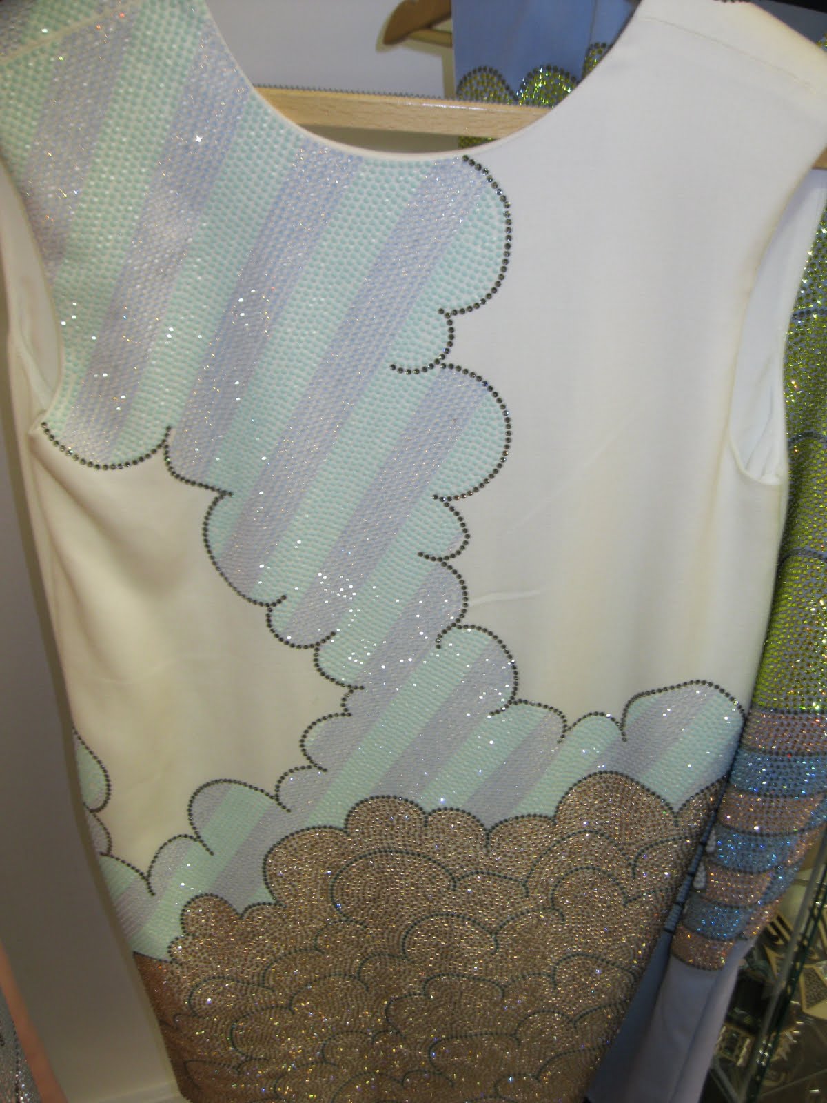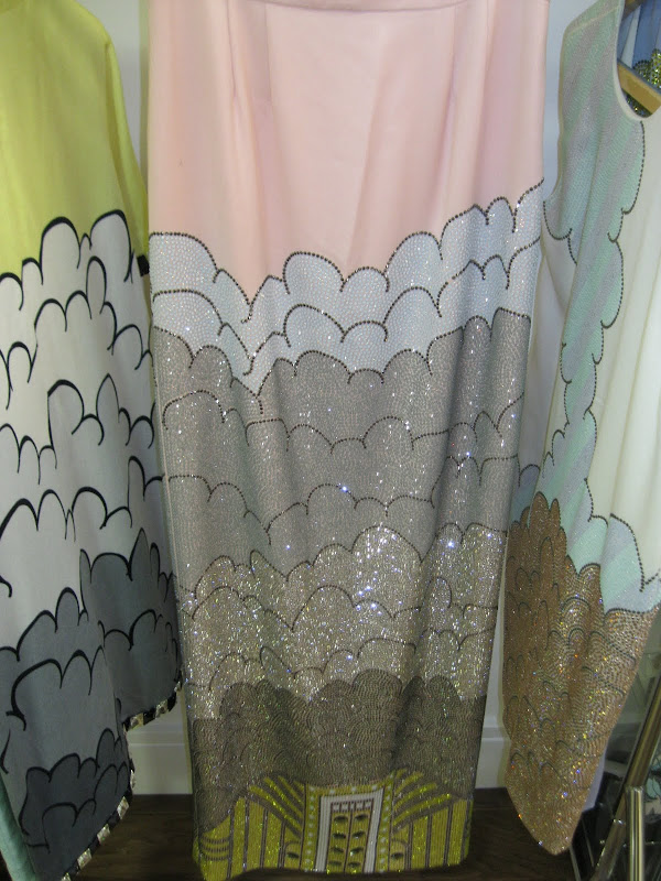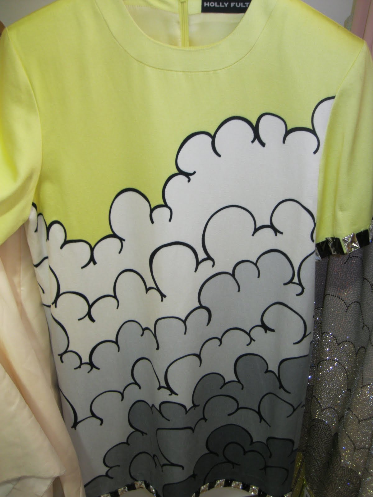 *Holly Holly everywhere, not a drop to drink. Ms Fulton's collection for next year is, quite frankly, utterly fabulous. I know I've harped on already about her catwalk from Fashion Week, but to see it up close was amazing. Her geometric shapes and Joan Collins brief were spot on, plus her cartoon take on glitzy clouds were a breath of fresh air, so to speak. LOOK*
