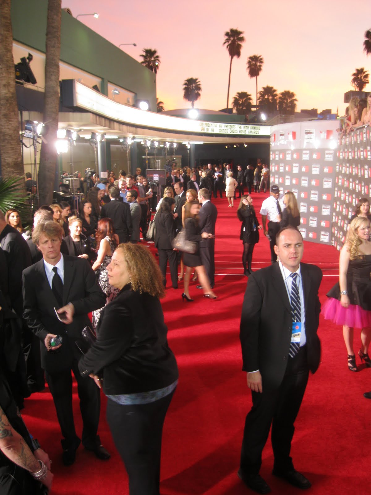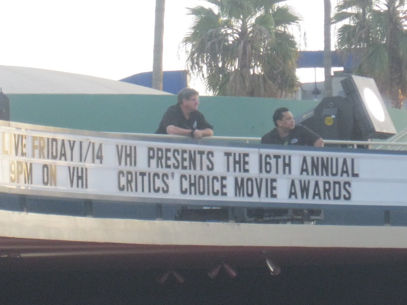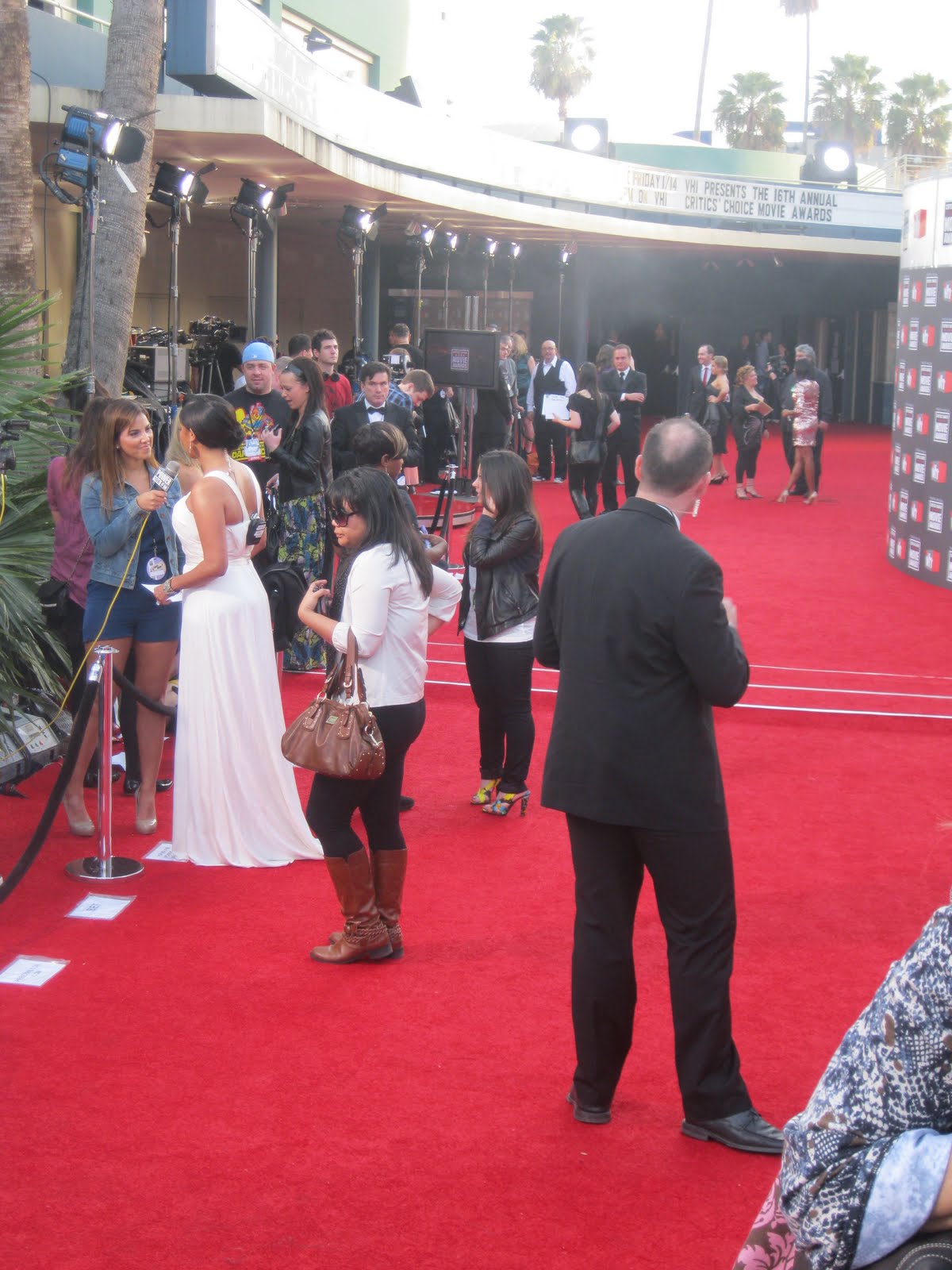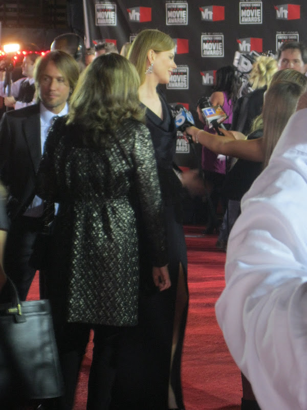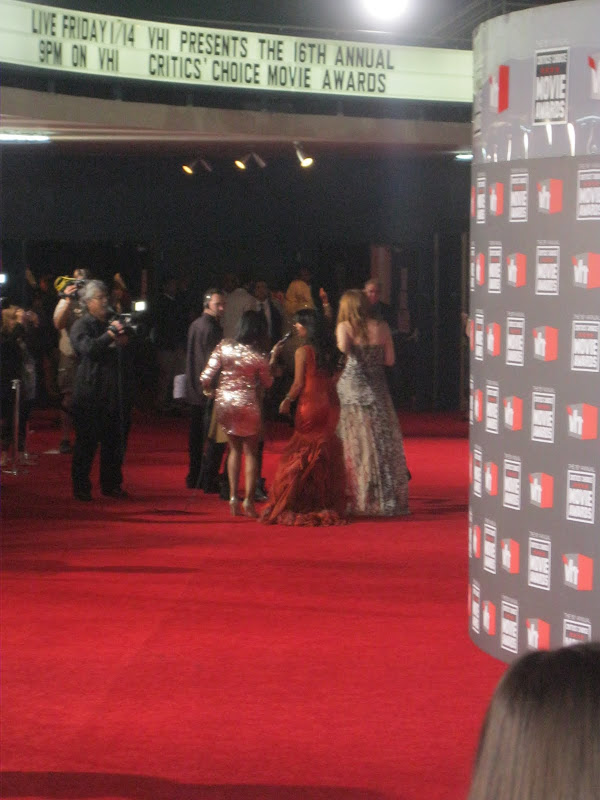 My God Louisa did well. As part of my busy LA schedule that she put together for both of us while I'm here, the Critics Choice Awards last night is just one of the red carpets we've done together. And the best for me because, dear reader, I got a glimpse, a good old stare in fact, at my favourite lady of the moment, KIM KARDASHIAN! She looked SUPER hot in her (unusually) long tangerine Vera Wang gown. Her curves were, once again, shown off to the max. Granted it's not everyone's choice of colour, but it looked gorgeous against her dark skin. Khloe chose a shorter animal print number with a long train - wasn't that sure about it to be honest, but her hair looked fierce!