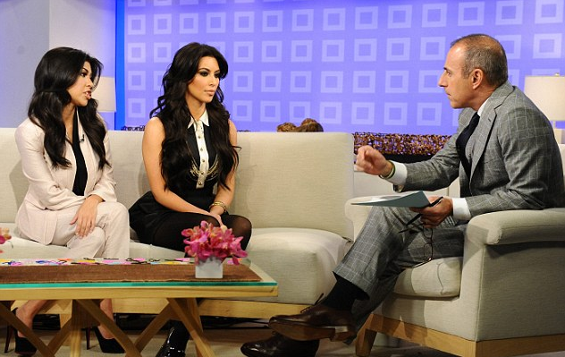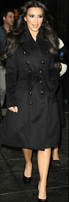 To start her wardrobe marathon, Kim wore the cute button down collared dress with fierce Brian Atwood heels. Her trademark skin tight frock made an appearance in a pink-blush Zac Posen. Next, for the Wendy Williams show, came the black Gomez-Gracia dress with waist cinching belt, then she threw on a sharp black Burberry trench coat to go see Piers Morgan and last but not least she wore a gorgeous one-shouldered purple dress which was for their appearance on MTV's Total Request Live.