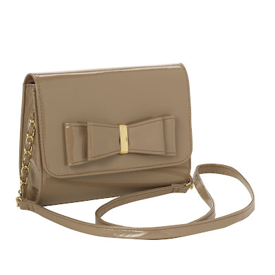 Embossed bag £5, in store beginning of February; patent bow bag £5, in store mid-January