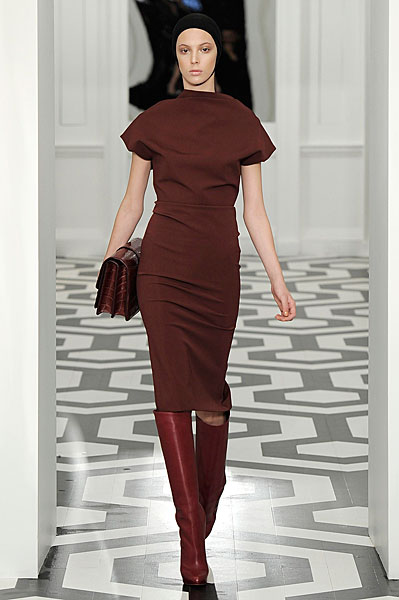 There were other lovely details. The bondage style strap belts very much 'made' some looks, boots and shoes by Louboutin, a first for Victoria, and some of the most gently placed pleats I think I've seen for a while. And, to top it off, there were huge bags, big cashmere ones that will be, no doubt, ultra coveted.