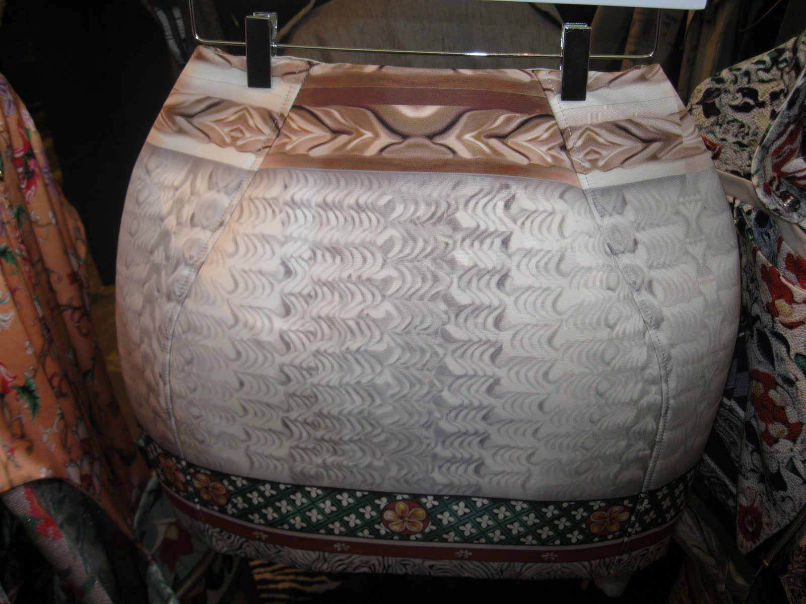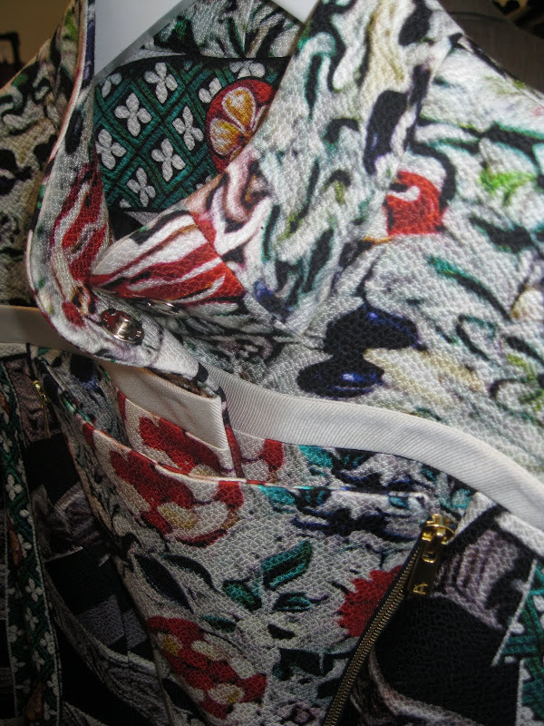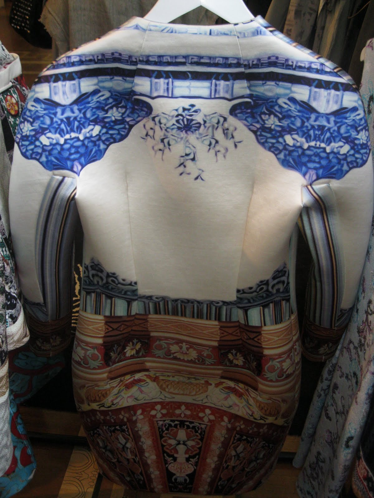 The show notes tell us that it was worldly objects such as Faberge eggs, ancient Chinese costumes and Meissen porcelain prompted the prints for Mary's new collection. You'd be forgiven for thinking how on earth a fashion designer would interpret these into clothing, but leave it to Mary, she knows exactly what to do. Especially as this season sees Mary venturing into knitwear - as if it can't get any better! "I gave the knitters in Italy a nightmare... they had to re-set the machines for every single line" she told Hilary Alexander.