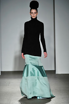 One of my favourite looks, long jumpers over full skirts, made an appearance, as did a few gorgeous red carpet gowns, the grey long-sleeved dramatic dress one of my favourites.