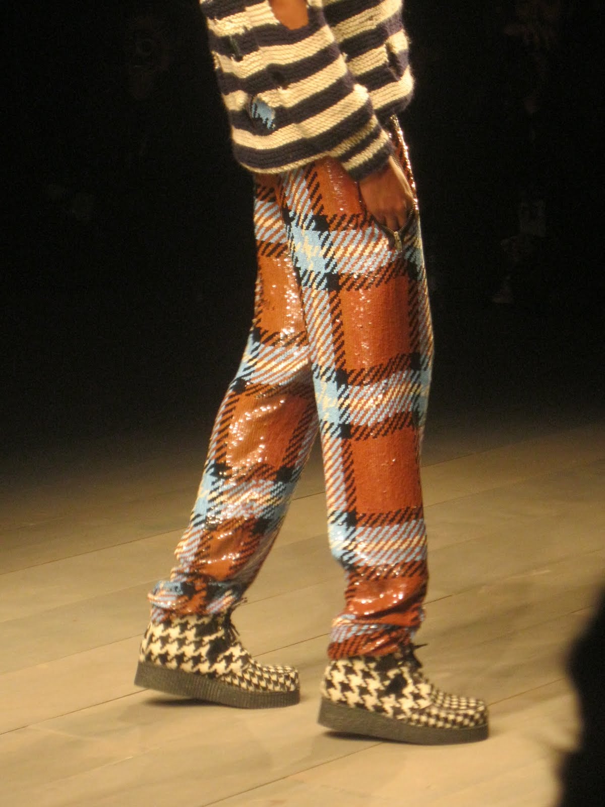 Autumn winter 2011 saw not only men strut down the catwalk (Ashish dabbled in menswear years ago and I'm so glad he's doing it again now), but also a darker, rebellious fashion child. Ripped jeans, holey jumpers (loving the new knitwear vibe) over sequin tartan trousers, slogan tops, clunky shoes and skeletal shapes.
