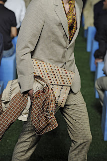 So there have been big bags, not even weekend bags, these look like everyday carriers which is just as well - to buy one would probably be a whole months salary for most people, I'd want proper use out of it. On the other end of the spectrum, there has also been clutch bags galore which once again sees the lines of masculinity and femininity in men's fashion blurred even more. An interesting side to the fashion industry. Prada's studded and plain clutches look like they'll go with any outfit, but will men jump on this trend?? I just don't know. I guess they could call them a filofax-esque carry thingy, or something more masculine!
