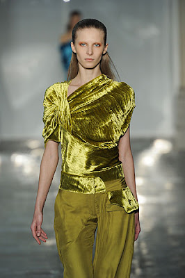 For autumn winter 2011 van der Ham chose to work mostly with crushed velvet in strong, jewel colours. Again, a triumph on the catwalk, although very different to his lighter spring range. Have a look at both below.