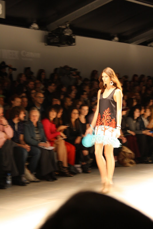Lots of silk, in the form of wide leg trousers and dresses, with sparkly embellishments, some feathers and bright, swirly Versace-esque prints made this collection my favourite of fashion week so far.