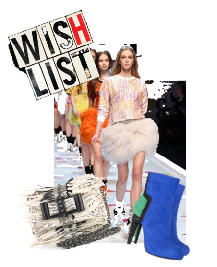 ... just a little one for Fashion Week! *D&G's AMAZING feathered skirts, changing colour every hour**Christian Louboutin's sweet charity shoulder bag**Pierre Hardy's colour block boots**A venti Starbucks* Leave a comment