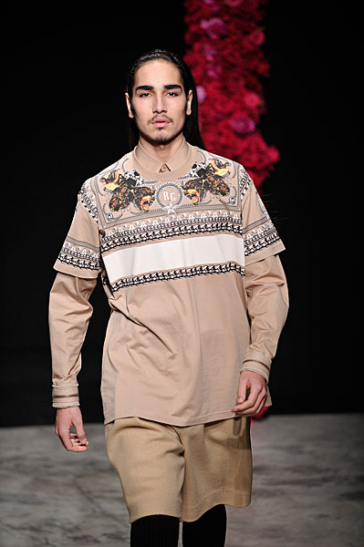 A dark, Gothic black runs throughout the collection, with intricate Rottweiler prints - to sleeves, emblazoned on the front of jumpers, as a pack of ferocious beasts congregated at the bottom of shirts or printed onto scarves - and some soft browns and buttery camel hues crop up in tailoring and outerwear. Utterly gorgeous, if not sometimes fashionably frightening.