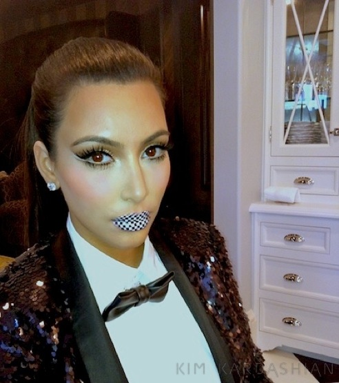 What I wanted to say is how fierce I think Kim's temporary lip tattoos are. She posted this pic of herself on her blog with, as always, flawless makeup and these rather garish lips! She said: "I found these Violent Lips lip tattoos in Kylie's room and Mario and I thought it would be fun to try out a new look!".