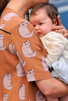 Katy dons Victoria's oh-so-cute red cat print dress that, quite frankly, I think should be the It dress for next spring/summer. Matched with the cat print shoes... pure fashion YUM!