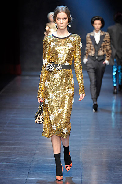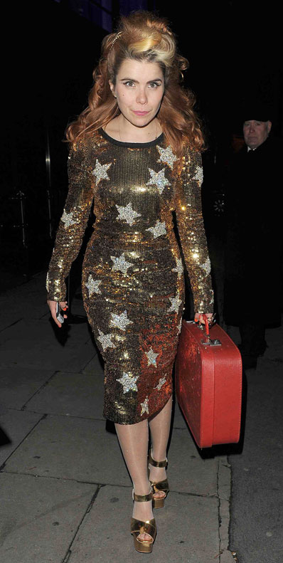 Never one to shy away from under-dressing, Paloma Faith was seen last night at London's Playboy Club for it's Christmas party in this Dolce & Gabbana dress. The fabulous singer performed at the club in one of the hot looks from D&G's autumn winter 2011 collection - gold sequins and stars!