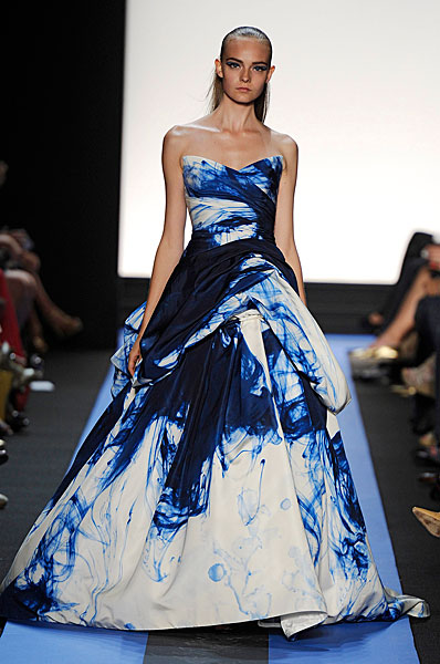 A dress I'm sure I'm not really meant to like, but I just do! Sarah Michelle Gellar looks gorgeous in the swathes of inky blue and white fabric that is the star dress from Monique Lhuillier's spring summer 2012 collection.