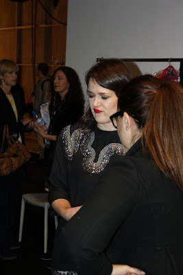 Back stage was, as always is for any designer and any show, hectic. Make up artists running from one model to the other, models running away from people eating bread, and people eating bread running to sort out the clothes or to polish the amazing clutch bags.