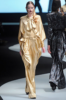 I will write more about their new autumn winter 2012 collection soon, but here are a few pictures from today's show. Big furs, loose silky blouses and dresses and lots of night time glamour told stories of their moon inspiration (which sat at one end of the catwalk). It was dramatic, which is typically V&R, but for next season the Viktor & Rolf lady is less painted red face like this time last year, and more romantic surrealism.