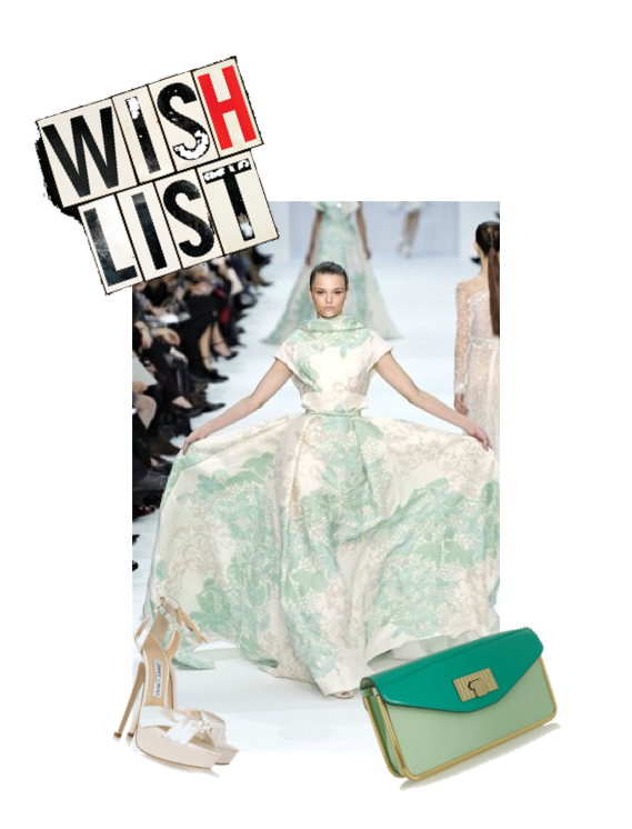 *A dramatic Elie Saab couture gown from Spring Summer 2012**Jimmy Choo's super high white heels**Chloe's two-tone green clutch* Show 1 comment