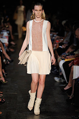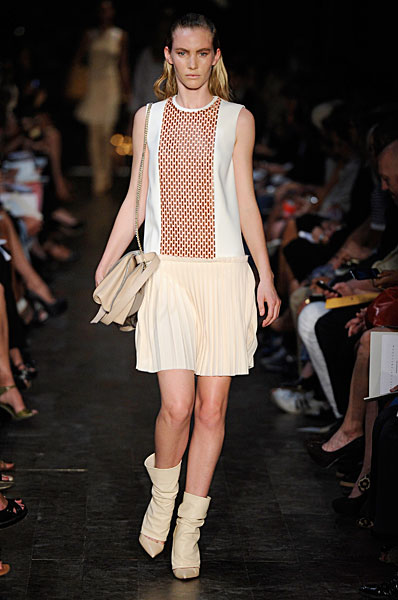 Jennifer Lopez just gets better and better. Here she is in a tangerine Victoria Beckham dress from the spring summer 2012 collection, equipped with those uber fabulous sports luxe straps, on set for the elimination show of American Idol in LA.