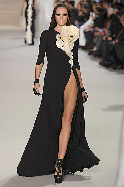 The queen of reality has officially entered the royal fashion arena people. Paris couture has embraced Kim Kardashian. Or has it? We don't really know, but what we do know is that apparently the Stephane Rolland show - exquisite being an understatement - was running over an hour late because Kim and Kanye hadn't arrived (thanks Redcarpet-fashionawards.com for the updates). Even Rolland himself is pandering to her tardiness. That's me girl!