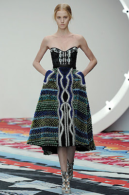 David Koma has come a long way since Cheryl Cole debuted his UFO-like, round top dress on the X Factor a couple of years ago. So far, in fact, that he is paving the way for new trends for next spring/summer, namely the honey comb design. He works in colour, but not crazy clashes, usually sticking to primary hues like this green and blue palette. And he referenced the Olympics by taking inspiration from tennis players... the most fashionable ones, obvs!