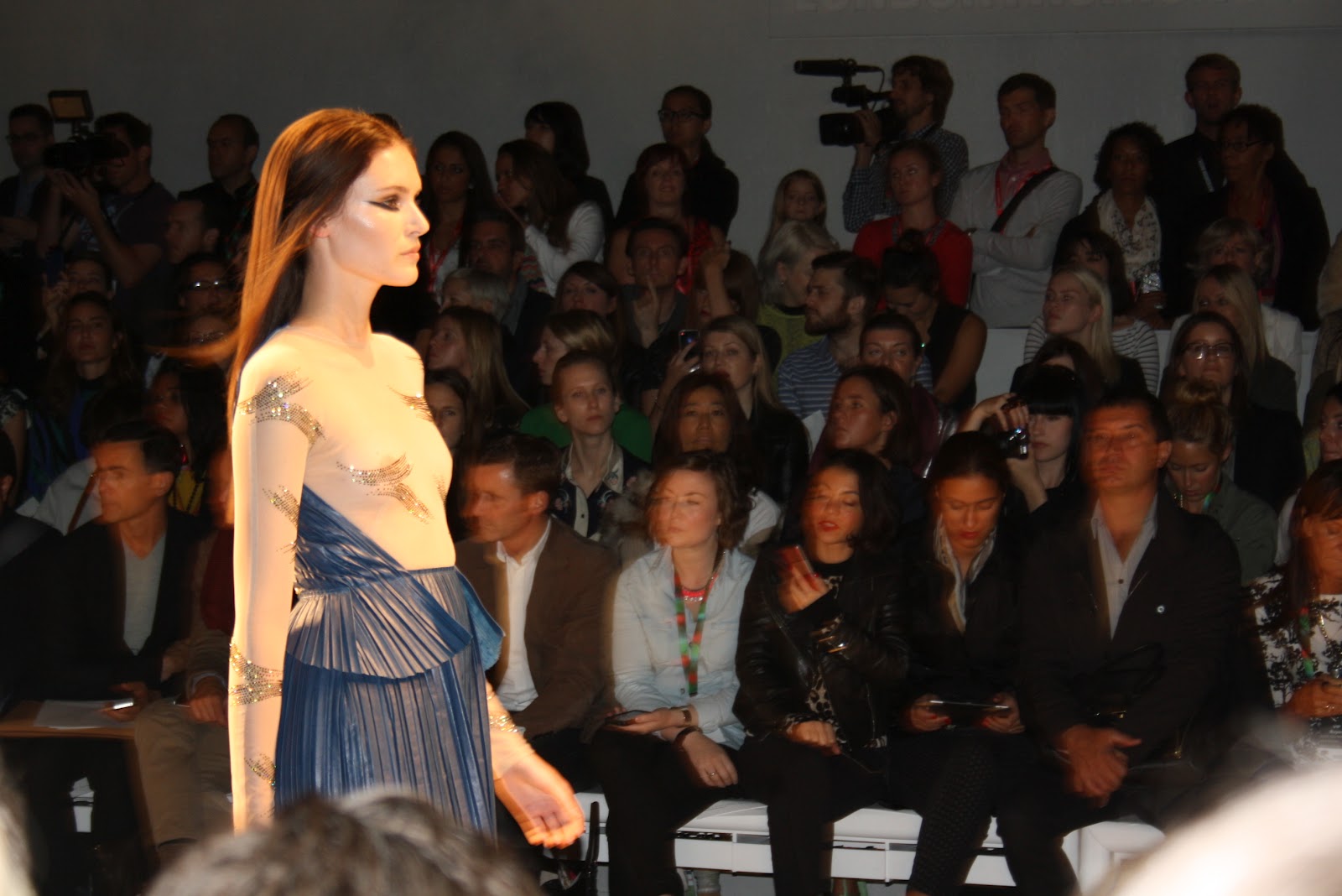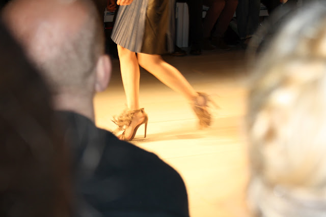 Marios Schwab's glamourous Amazonian warrior women, equipped with the best fringed shoes I've ever seen, the longest, straightest hair and pleats, folds, raffia belts and Swarovski embellished sheer panels. This collection is all about 'Schwab [exploring] at once both nature and human ancestry' according to the show notes... I love the new Schwab women!