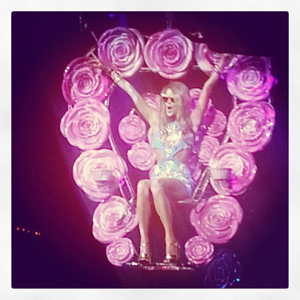 We waited for Anna to make her entrance. And what an entrance. On a huge, sparkly-rose adorned chair from the ceiling. Fashion Shower blasted out, and Anna waved and giggled from above us.
