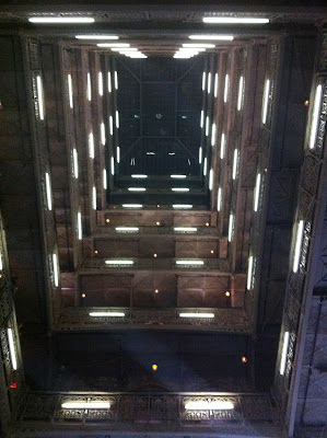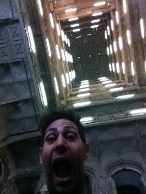 The venue: a run down, nine story building in New York's Financial District. But don't be fooled, it was one of those oh-so-cool buildings with original features, cracked walls, a barely there structural frame, a hollowed middle... and lots of stairs. It was hard not to say 'WOW' on entry, look...