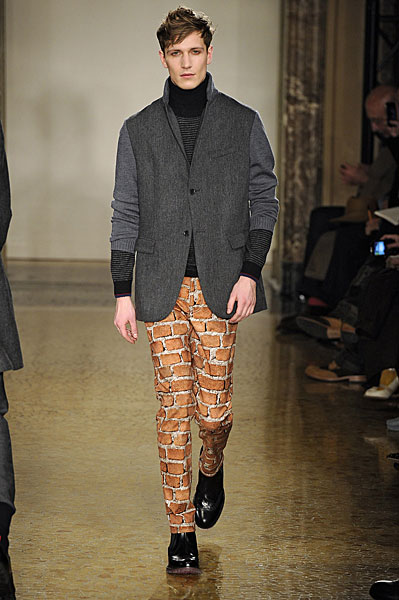 *Solange's Moschino brick print on the catwalk...*