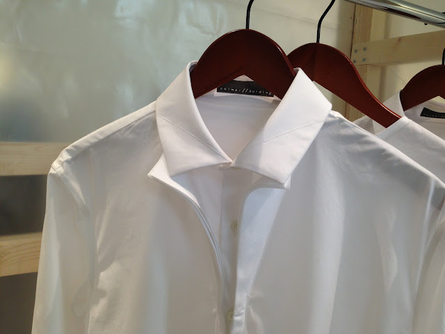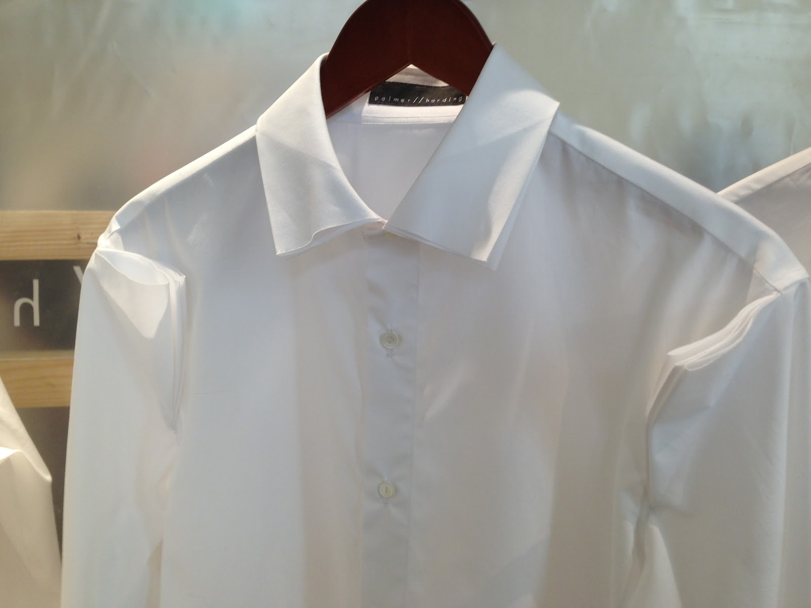 If ever there were designers to tackle how to do good shirting and genius ways to wear one, these boys have won, hands down. Twice over. Detailing is key to the Palmer Harding aesthetic. Cinched waists, cuff link-like embellishments, origami folds on splaying from the seams and asymmetric lengths all make up another outstanding collection from Palmer Harding.