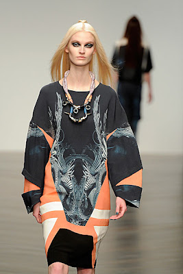 He knows how to dress a woman, and for autumn winter, it's powerful, sexy and sculptural. JPB said of his collection: "I'm obsessed with the idea that numbers and geometry have symbolic and cosmic value, with the female form being the ultimate cosmic being" And his cosmic woman was dressed in geometric star print, power shirts and trousers, cocoon shoulders and one of my favourite shapes - that long tunic over skirt look. Gorgeous.